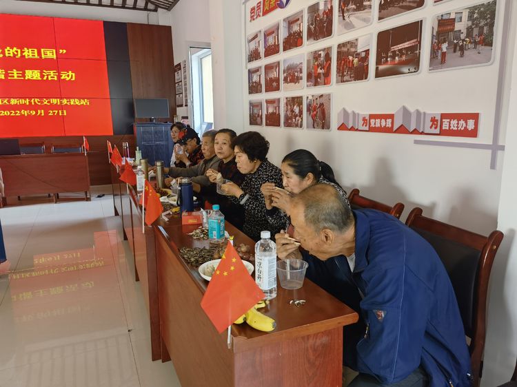 另一边,文体志愿者们用激情昂扬的歌喉和活力四射的舞姿,共同欢庆中华人民共和国73周年华诞,同时一满腔热情喜迎党的二十大胜利召开,一个个精彩的节目开始:小合唱《我和我的祖国》、民族舞《万江》、蒙古舞《草原夜色美》等。此时志愿者们的水饺也熟了,一边有美味美食一遍欣赏节目。