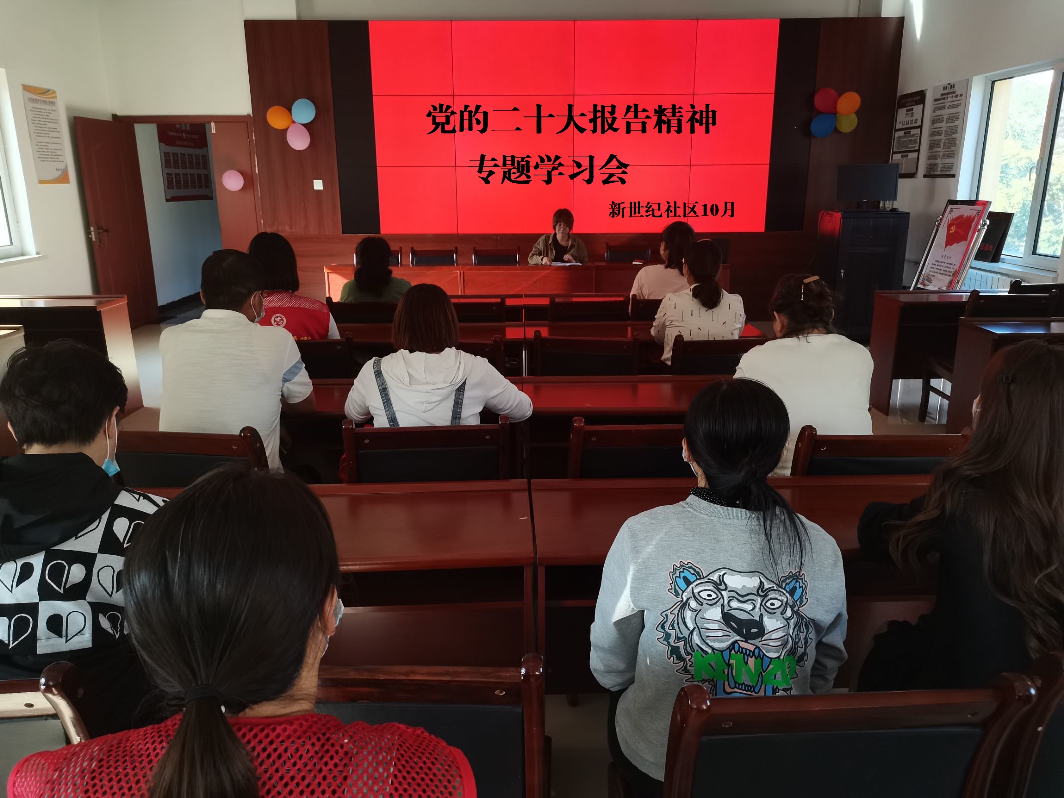 10月25日,新世纪社区党委在社区二楼民族团结进步大讲堂内举办党的二十大报告精神专题学习会。