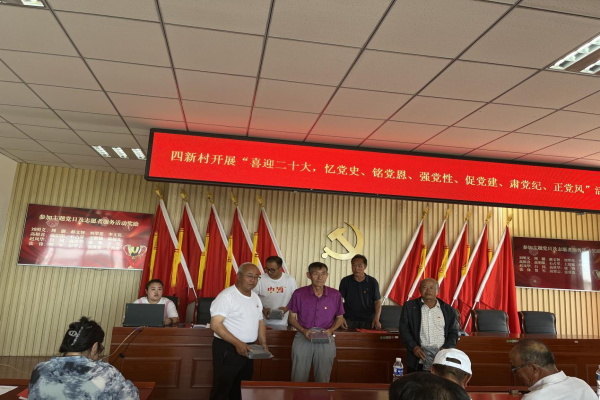 喜迎二十大,奋进新征程,在这个共产党建党101周年之际,为进一步让党员学习革命先烈的奉献精神,进一步推进党史教育,激发广大干部群众学党史、知党情的积极性和主动性,不断增强干部群众向党组织靠拢的政治自觉、思想自觉和行动自觉。四新村党总支于2022年7月1日开展“喜迎二十大,忆党史、铭党恩、强党性、促党建、肃党纪、正党风”为主题的“七一”活动。