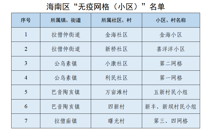 按照先行创建一批、积极培育一批、引领带动一批的步骤,确定了全区首批“无疫网格(小区)”名单,通过以点带面、示范引领,整体推动“无疫网格(小区)”建设,筑牢居民小区常态化疫情防控屏障。现将名单公布如下:全区首批“无疫网格(小区)”共7个(其中拉僧仲街道2个、公乌素镇2个、巴音陶亥镇2个、拉僧庙镇1个)。