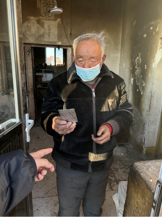 12月28日下午,四新村“暖心服务小分队”联合区民政局、卫健委、乡村振兴局,带着“暖心包”走进特困户、低保户、脱贫户家里,为他们送上“抗疫”药品、口罩、抗原以及慰问品,并详细的给农户说明了用药的知识以及新冠“阳性”后的注意事项,及时缓解了部分农户买不到药的困扰。脱贫户刘子清的妹妹刘翠兰躺在病床上说:“太感谢政府了,这几天我病的起不来,几个哥哥都是聋哑人,药买不到,这次有药了应该很快能好起来了”。