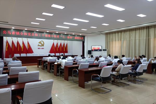 6月29日,公乌素镇组织机关全体党员职工干部,各社区社区工作人员集中收看“七一勋章”颁授仪式。
